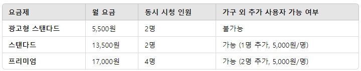 프리미엄 요금제 (17,000원): 최대 4명 시청 가능.